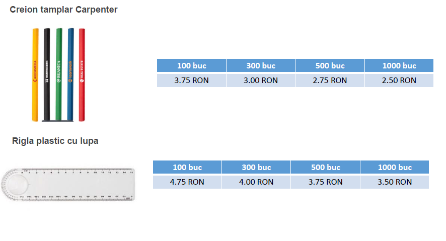 Carpenter este un creion patrat din lemn, ideal pentru a fi folosit pe tamplarie. Creionul este livrat neascutit. Personalizarea se realizeaza prin print UV, tampografie si gravura laser, pe o suprafata de 70 x 8 mm. Dimensiunea creionului este de 180 mm.
